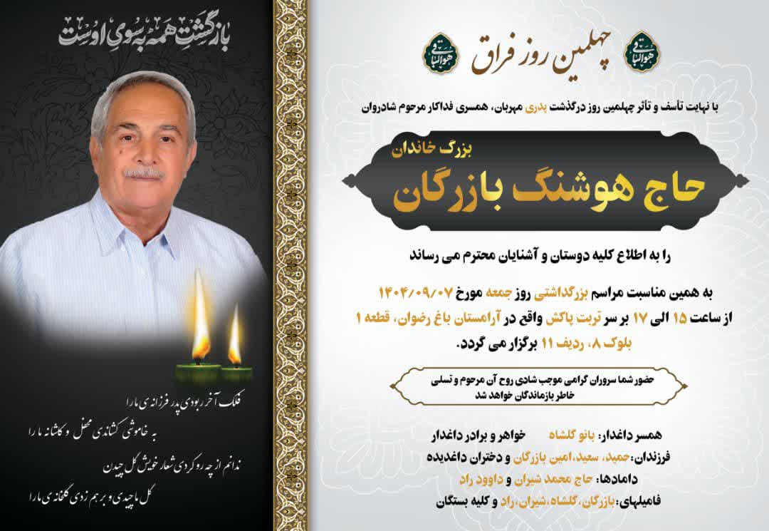04 آذر سفرِ جاوید مرحوم حاج هوشنگ بازرگان ارسال توسط admin آذر 4, 1404 0 مرحوم حاج هوشنگ بازرگان ادامه مطلب